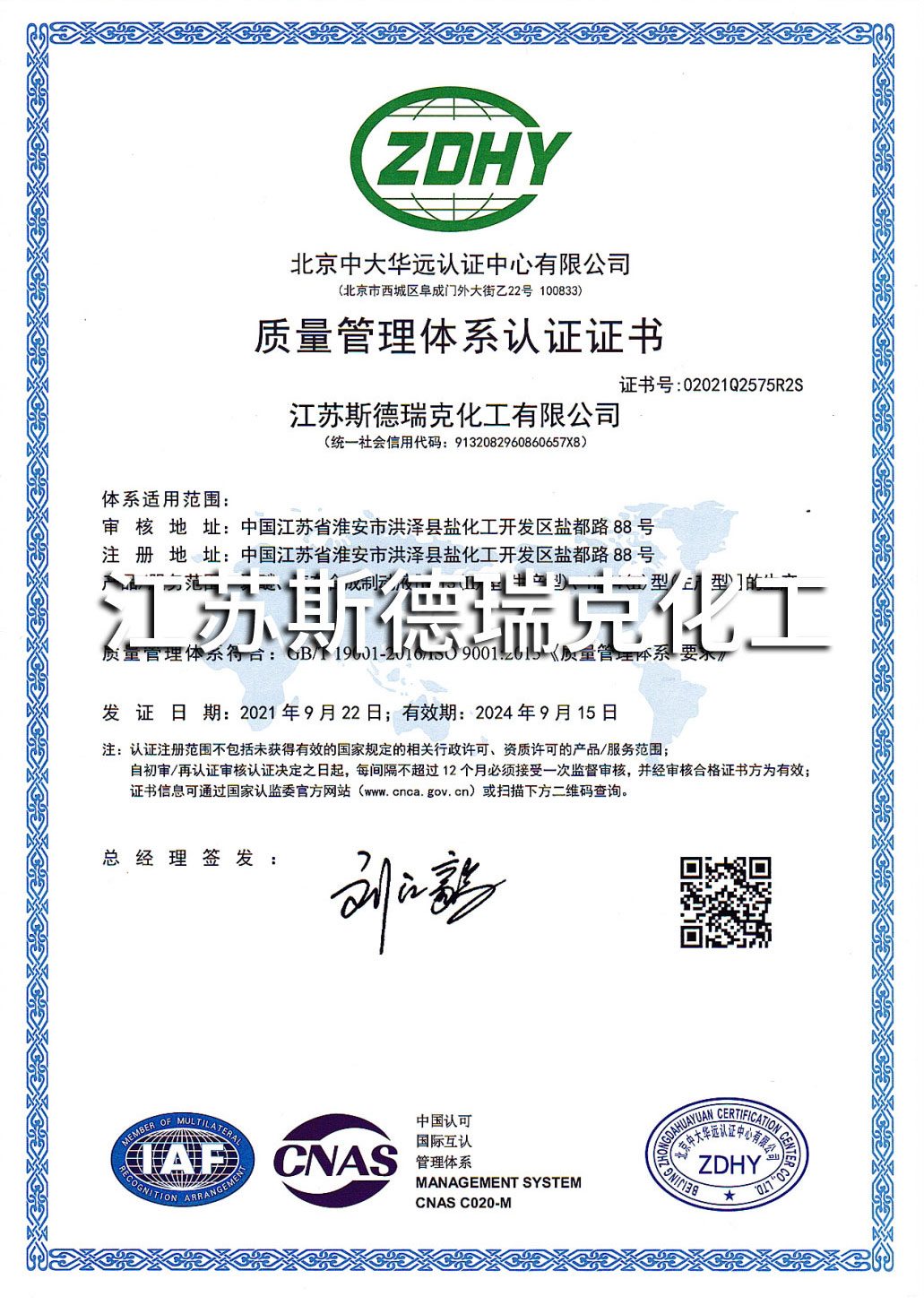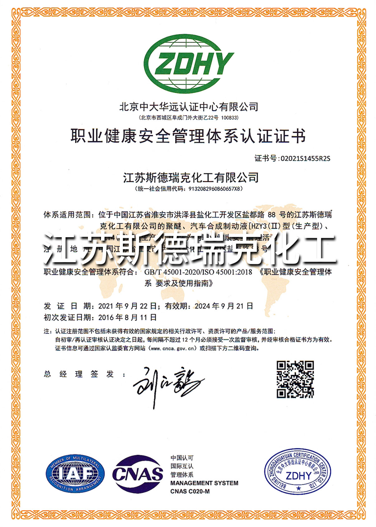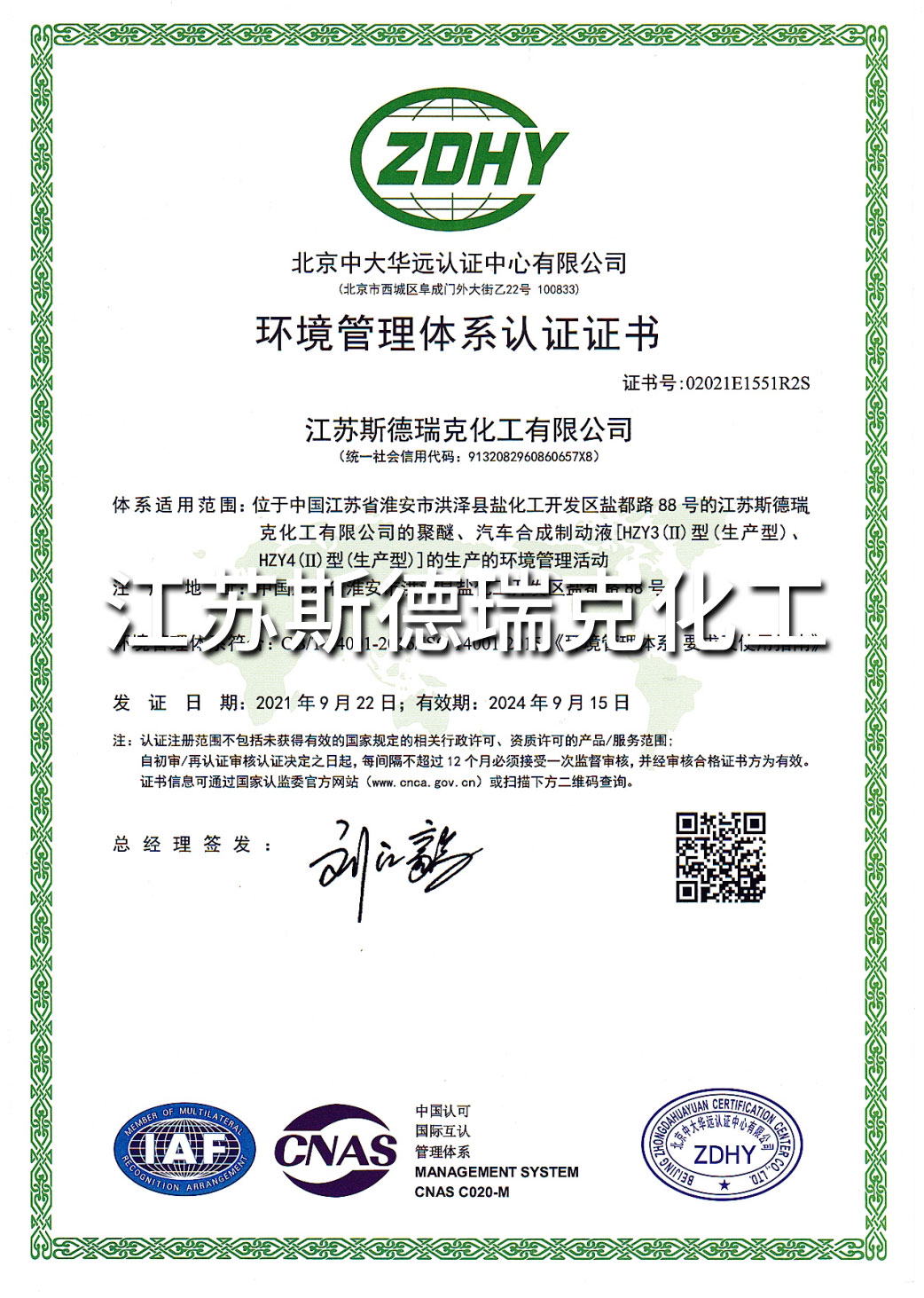 江蘇斯德瑞克化工有限公司成立于2002年,是一家集研發(fā)、生產和銷售一體化的“國家高新技術企業(yè)”。現有員工100多人,其中科技人員占20%以上;位于江蘇省淮安市鹽化工園,占地面積180畝,建筑面積達38000多平方米。